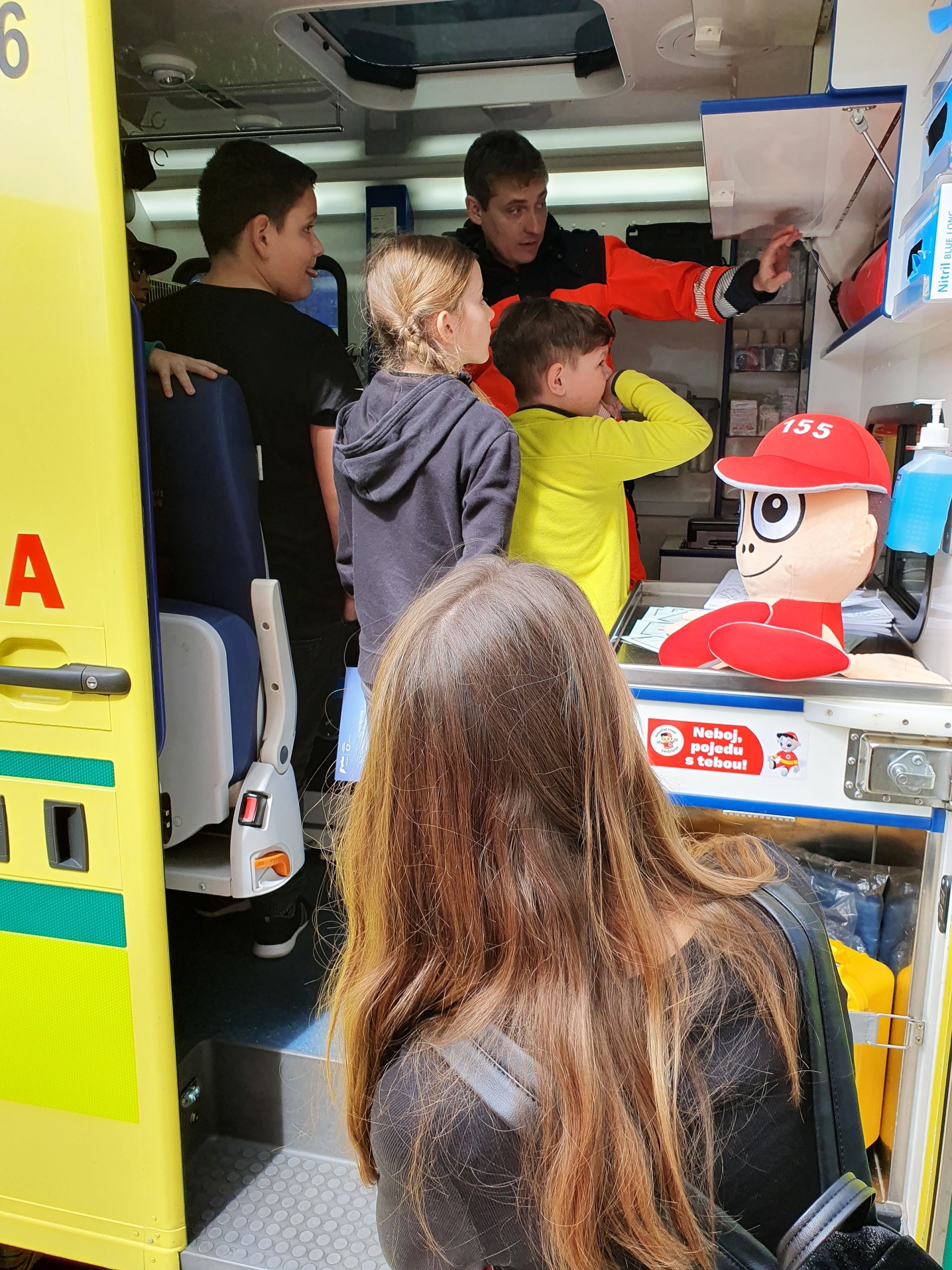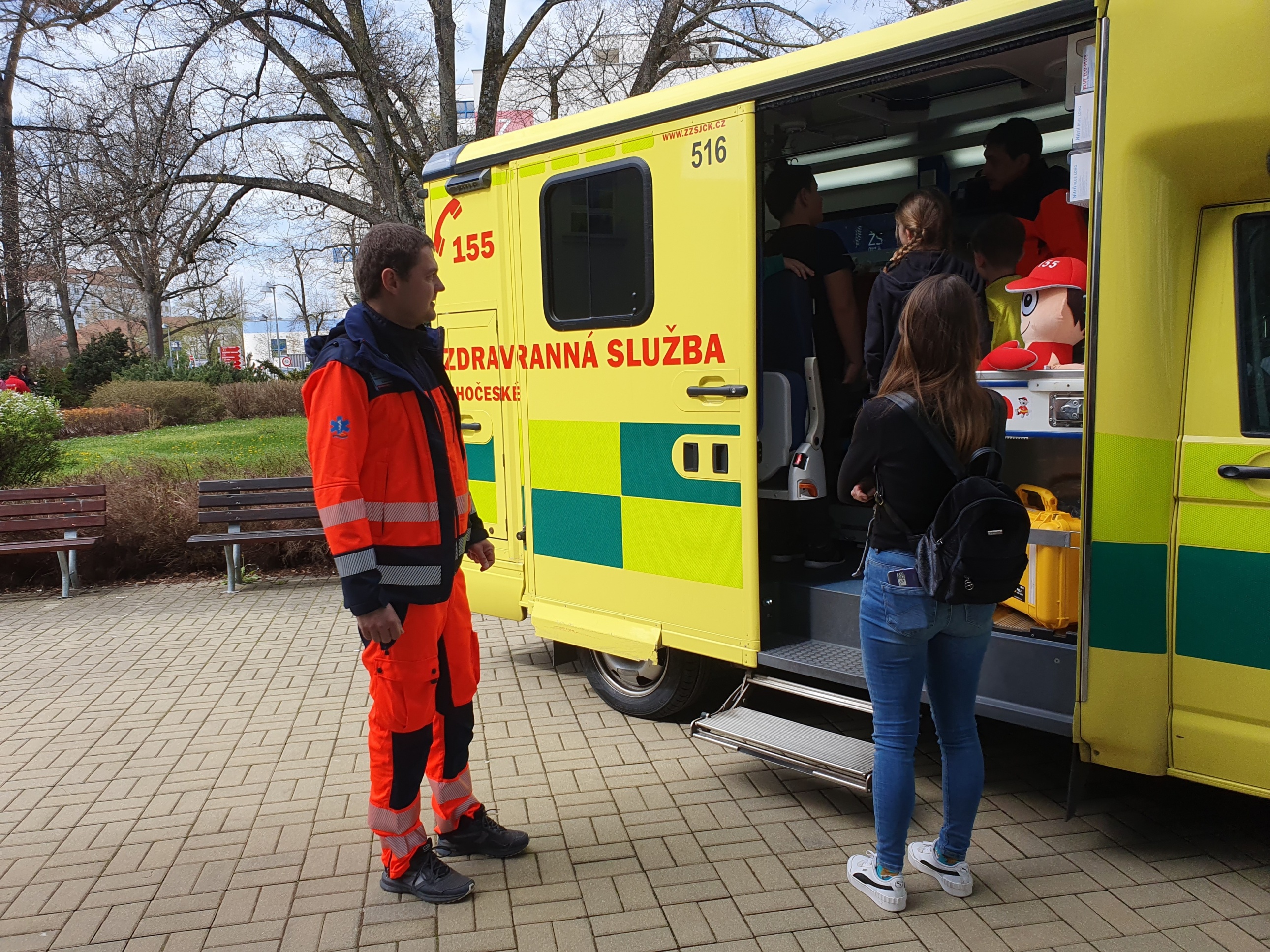 Jelikož je záchranná služba nedílnou součástí péče o pacienty s mrtvicí, měli jsme na akci také své stanoviště. Návštěvníci si mohli prohlédnout sanitku, přístroje a vybavení, které používáme k základní diagnostice, zda pacient utrpěl cévní mozkovou příhodu, nebo má jiné zdravotní obtíže, které mrtvici "jen" připomínají.