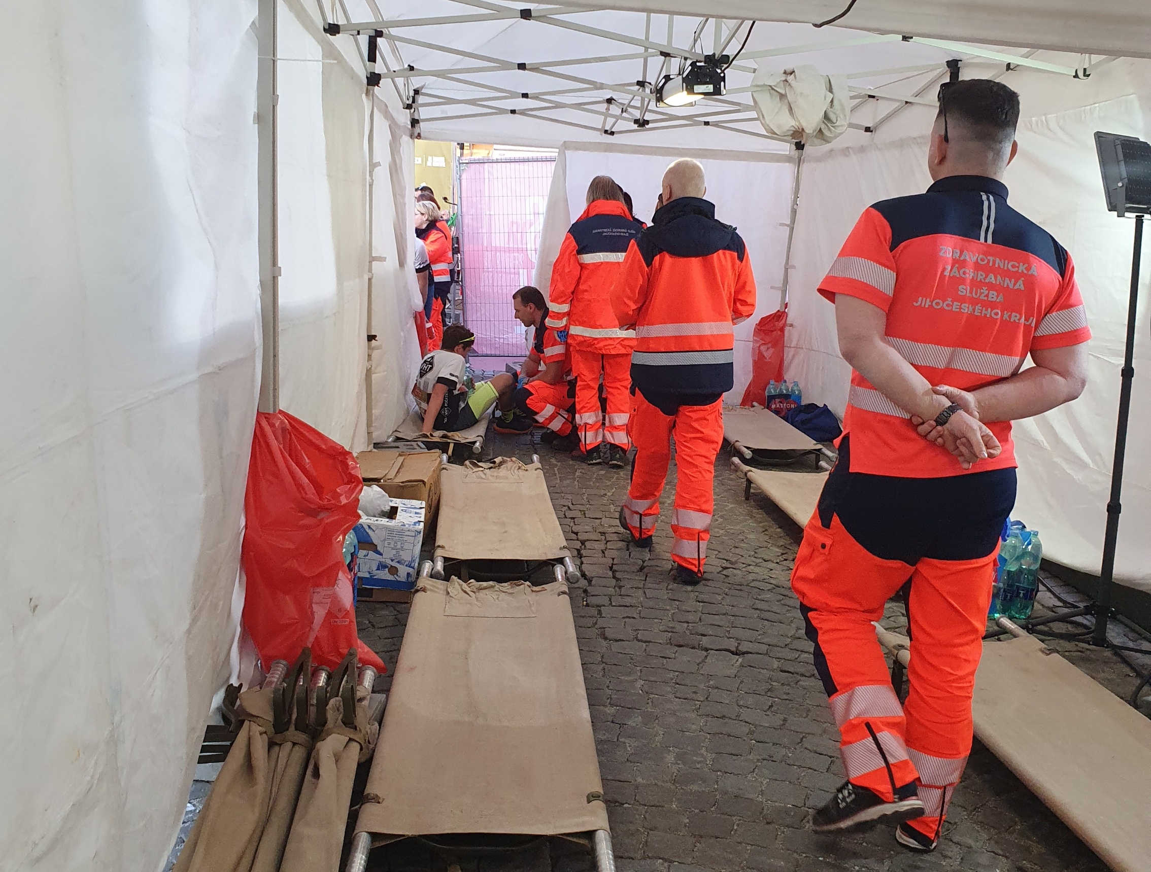 Zázemí pro práci záchranářů bylo vytvořeno za pomoci vozidla pro řešení následků mimořádných událostí a tří stanů, přímo u cíle závodu na Náměstí Přemysla Otakara II. Trvale zde byl přítomen lékař s týmem záchranářů a jedno sanitní vozidlo. Další čtyři výjezdové skupiny byly rozmístěny na strategických místech podél trati závodu.
