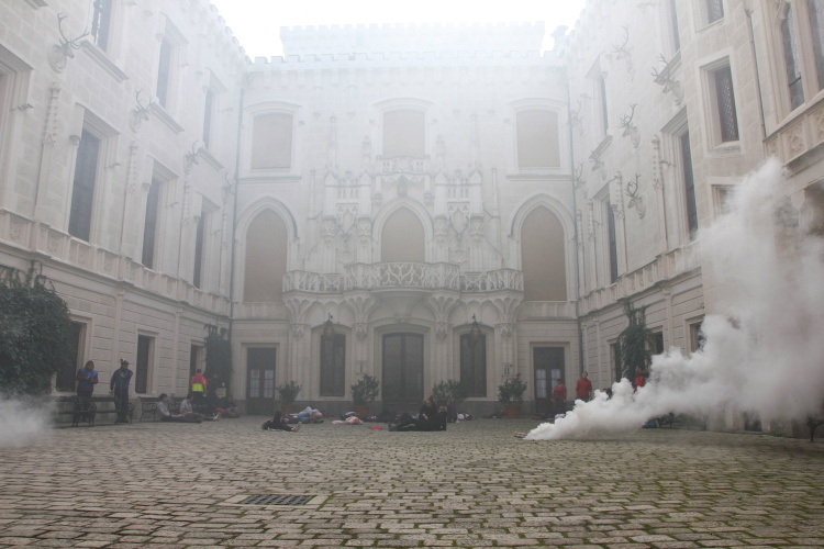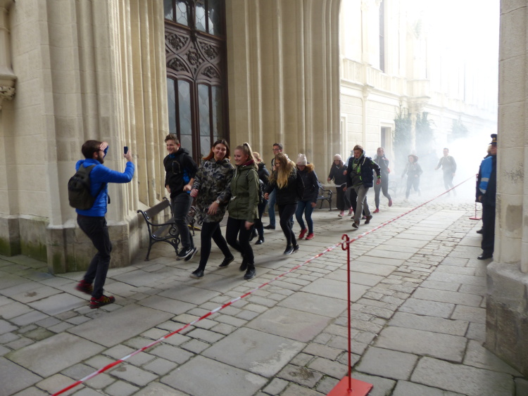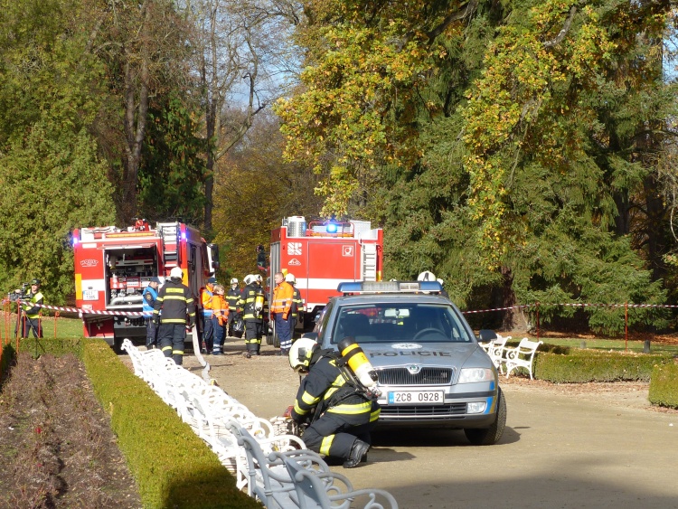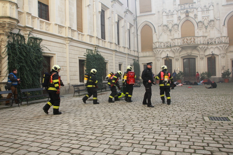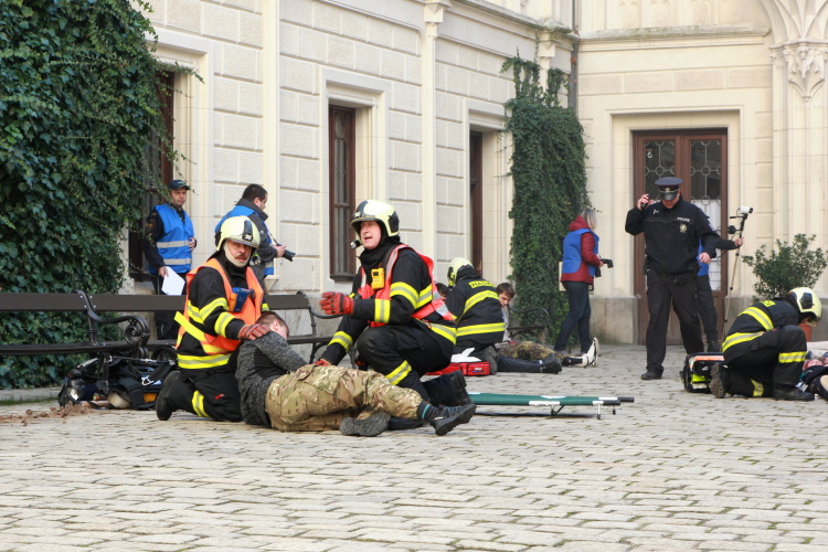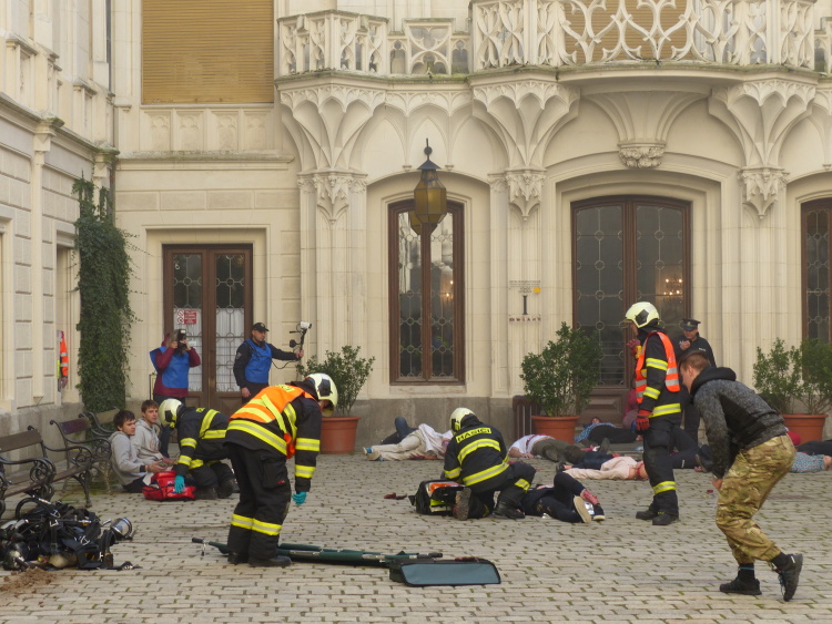 Prvotním úkolem cvičících složek bylo vyřešit nález nástražného výbušného systému na nádvoří zámku. Situace na místě však velmi rychle gradovala. V průběhu evakuace návštěvníků došlo k výbuchu nastraženého předmětu a ke zranění dvou desítek návštěvníků, kteří ještě nestačili zámek opustit. Záchranné složky tak musely souběžně řešit záchranu velkého počtu zraněných osob, hašení po výbuchu, likvidaci dalšího nástražného systému, který se objevil při pyrotechnické prohlídce a eliminaci pachatele.