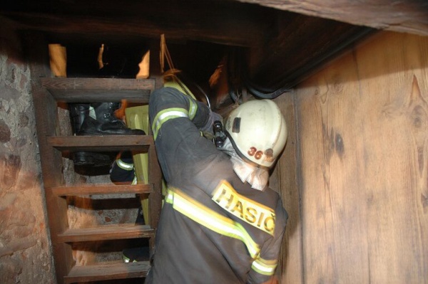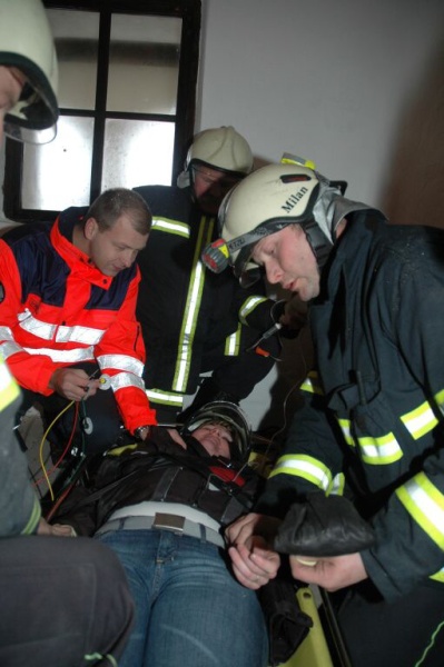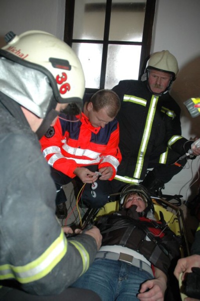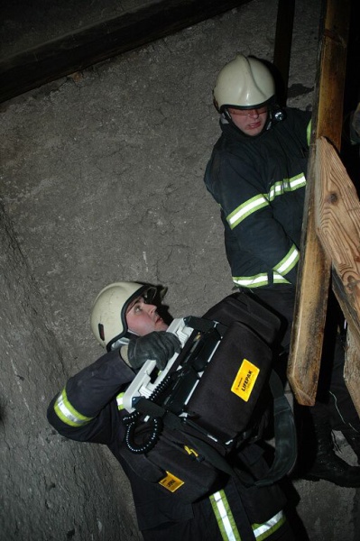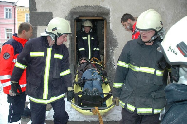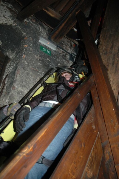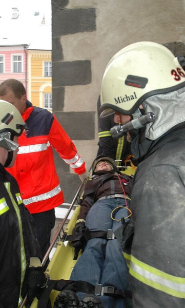 Cvičení na kostelní věži, Prachatice, 23.1.2007