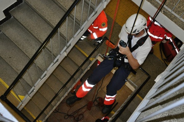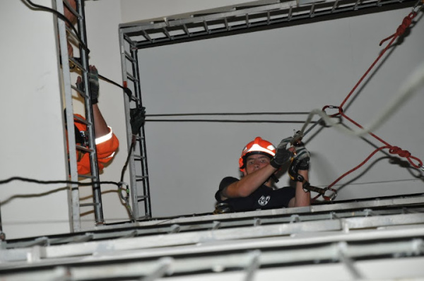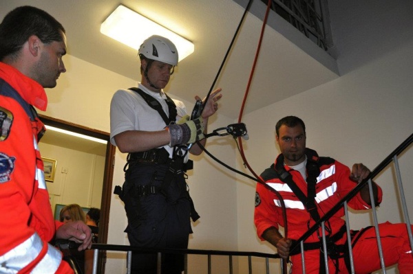 Čtyři členové našeho výškového záchranného družstva se, po technické stránce, podíleli na zajištění soutěžního úkolu slanění ze čtvrtého patra.