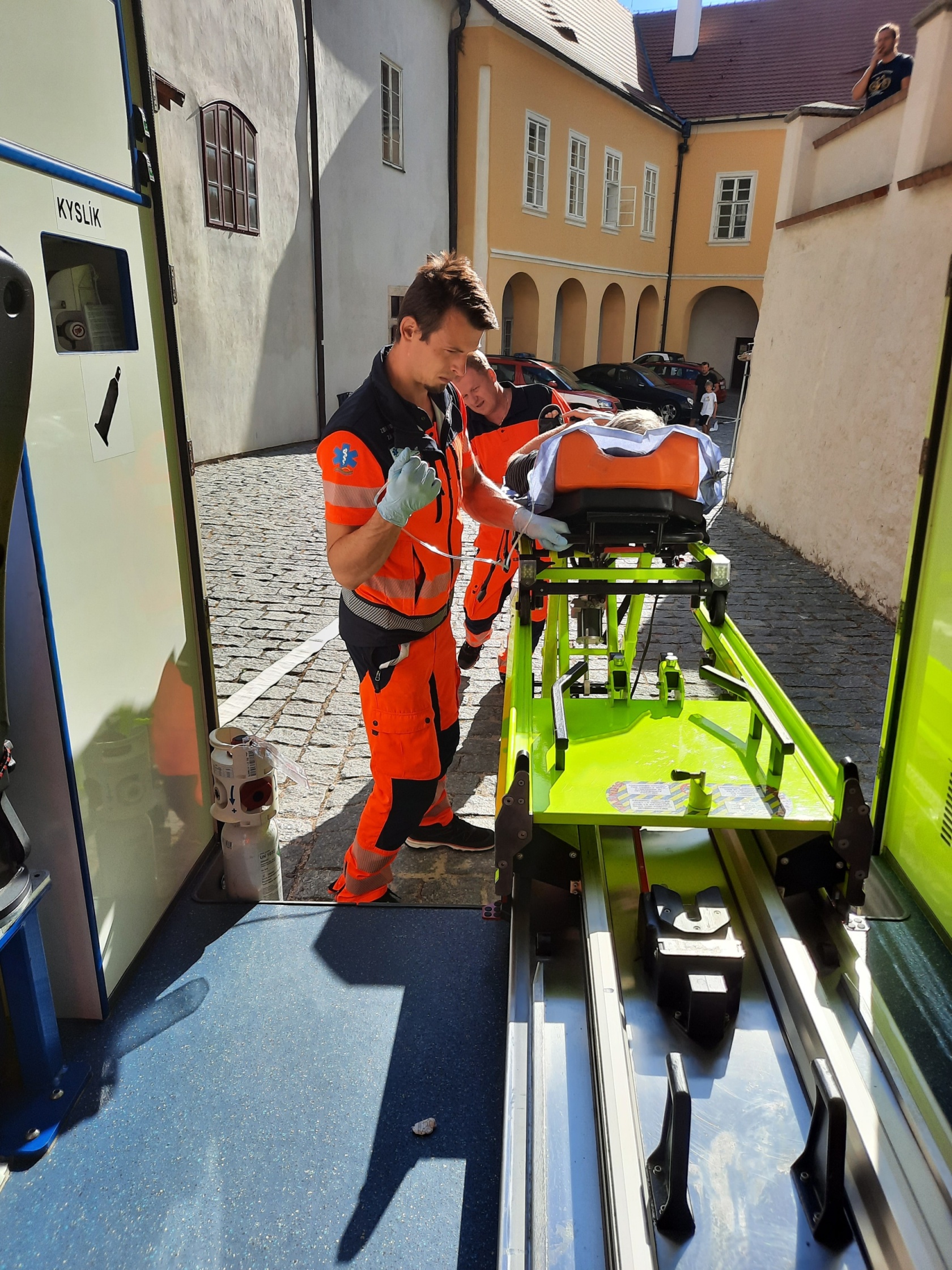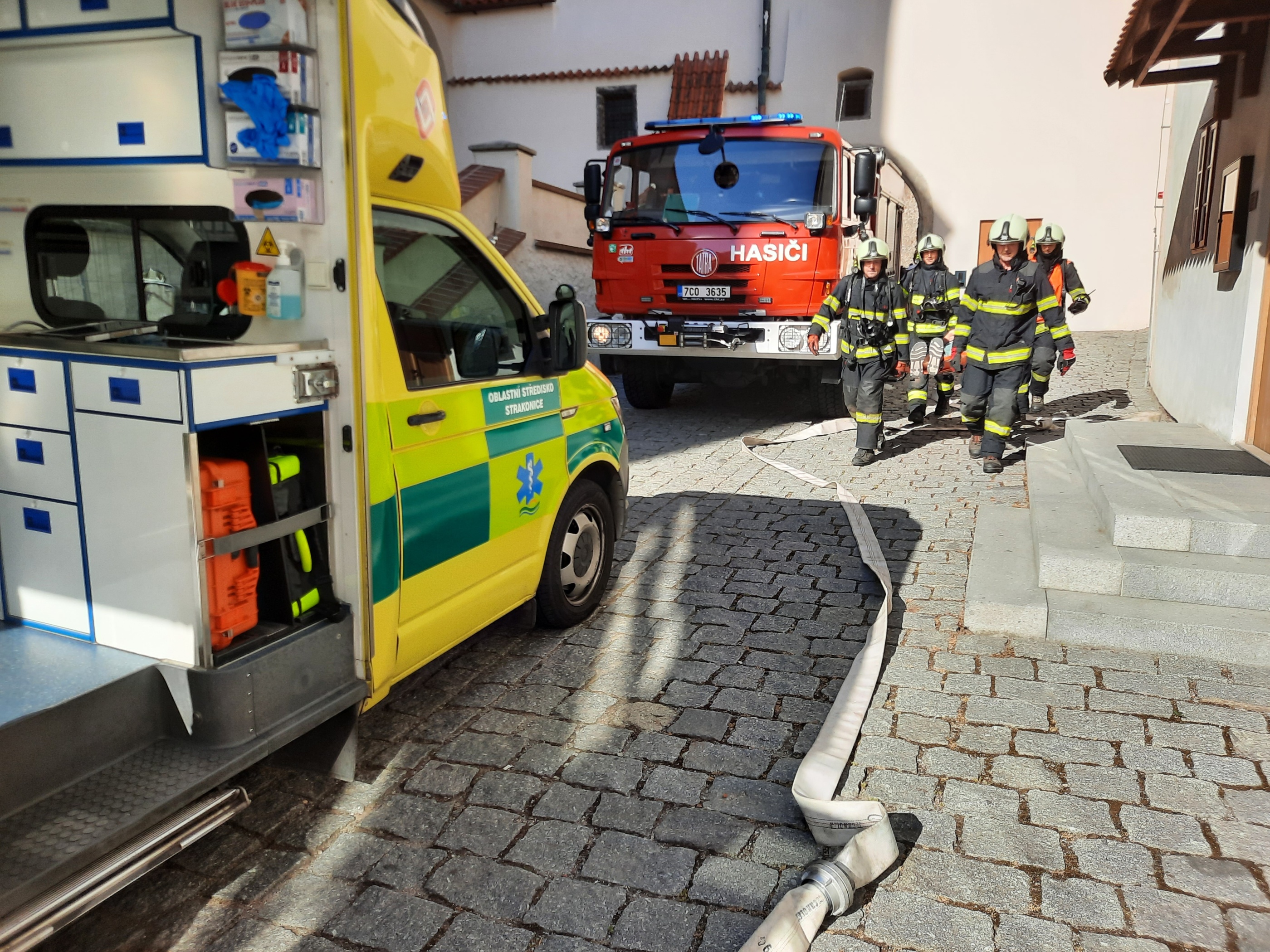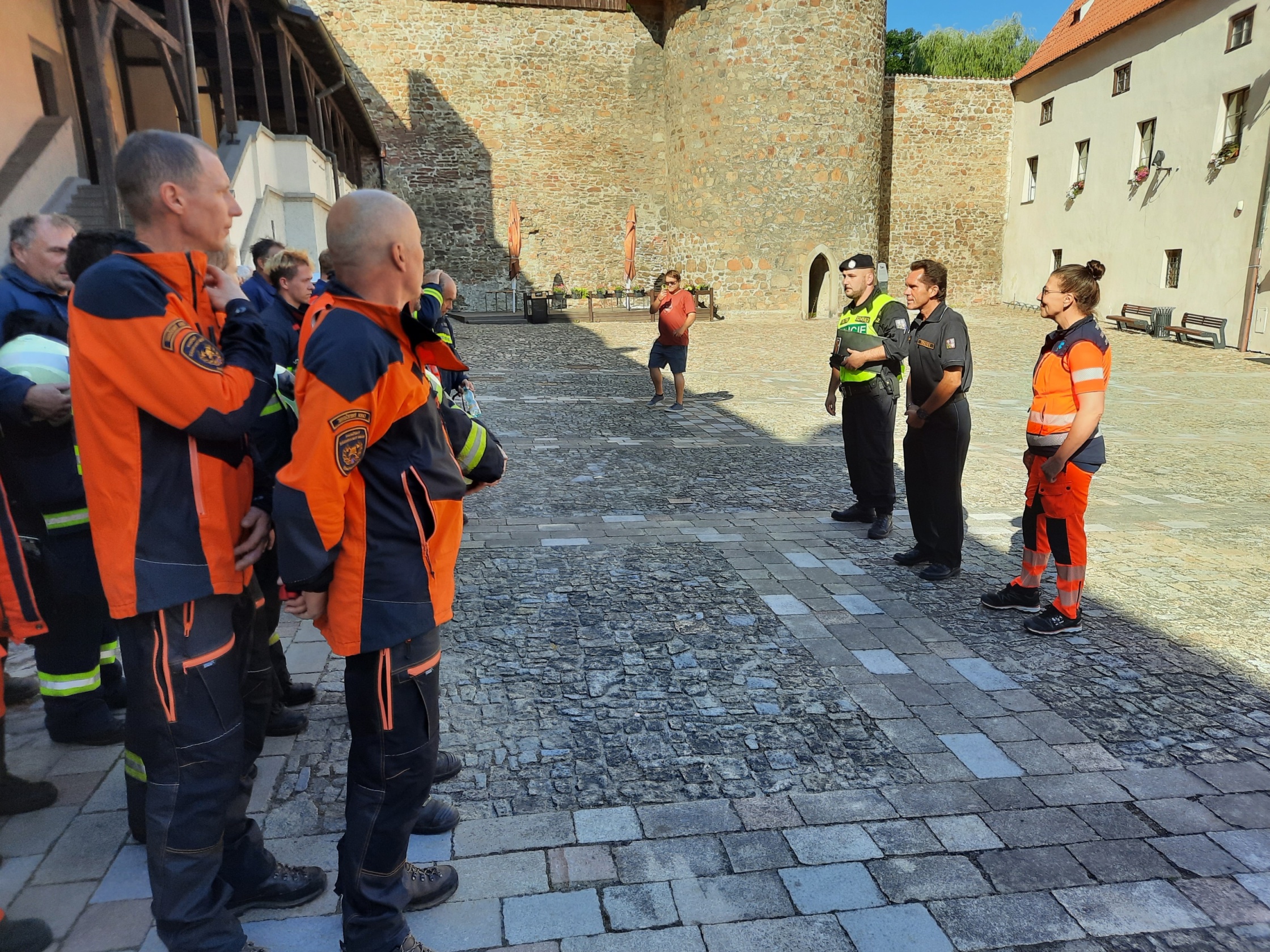 Následně se členové výjezdové skupiny přesunuli do určeného prostoru na hradním nádvoří, kde vyčkali na provedení záchrany další osoby z hradního ochozu. Poté, kdy lezecké družstvo HZS JčK bezpečně evakuovalo zraněnou osobu, byla předána do péče výjezdové skupině Zdravotnické záchranné služby JčK k poskytnutí přednemocniční neodkladnou péči a následnému transportu do zdravotnického zařízení k dalšímu nezbytnému ošetření.