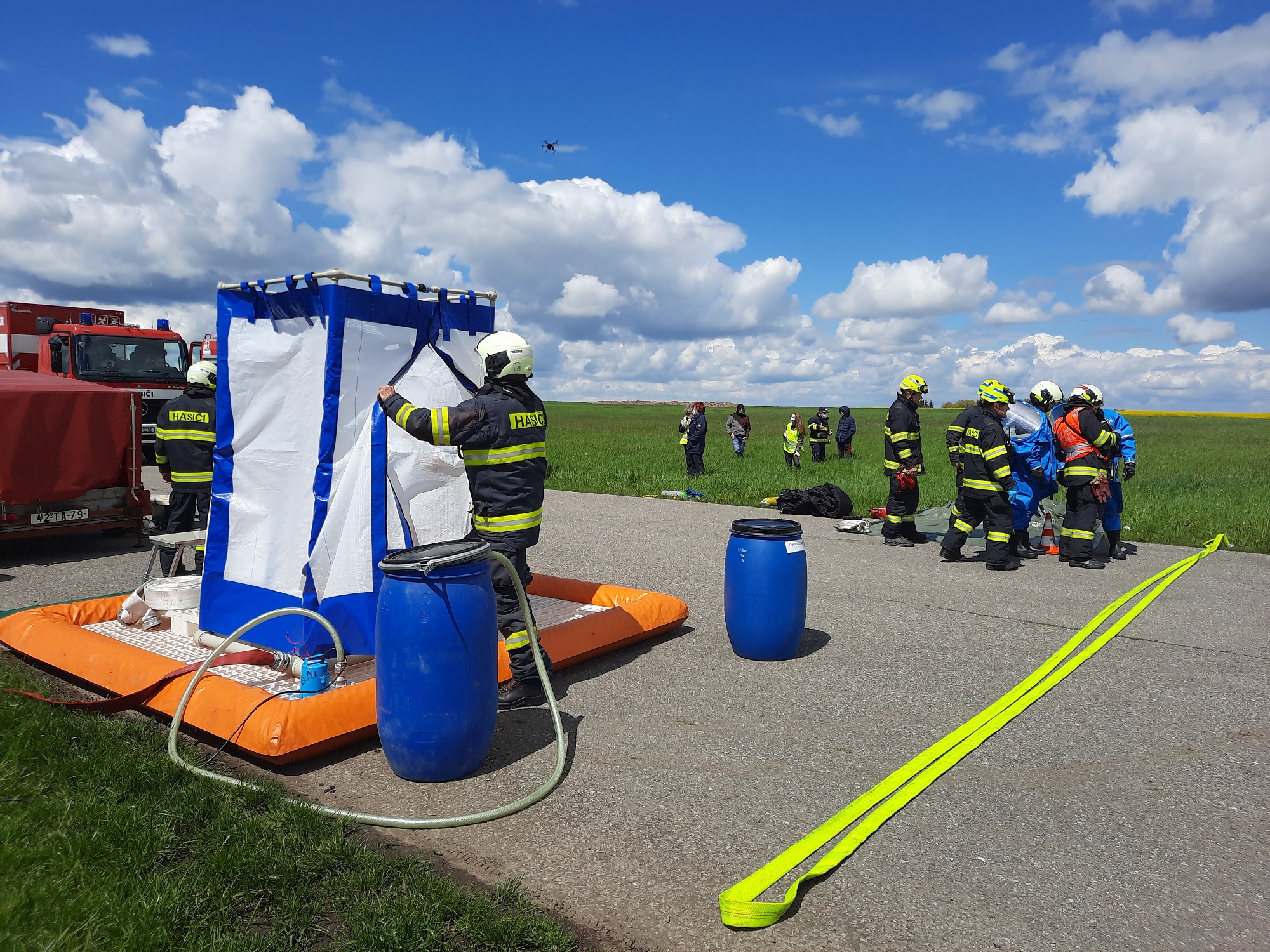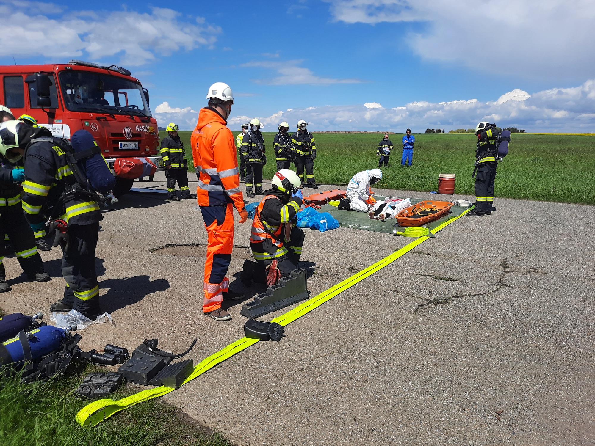 Tématem taktického cvičení složek Integrovaného záchranného systému, které se uskutečnilo 18.5.2021, byla dopravní nehoda osobního vozidla a cisterny přepravující 30% kyseliny chlorovodíkové (HCl) s následným únikem nebezpečné látky v prostoru dálničního tělesa.