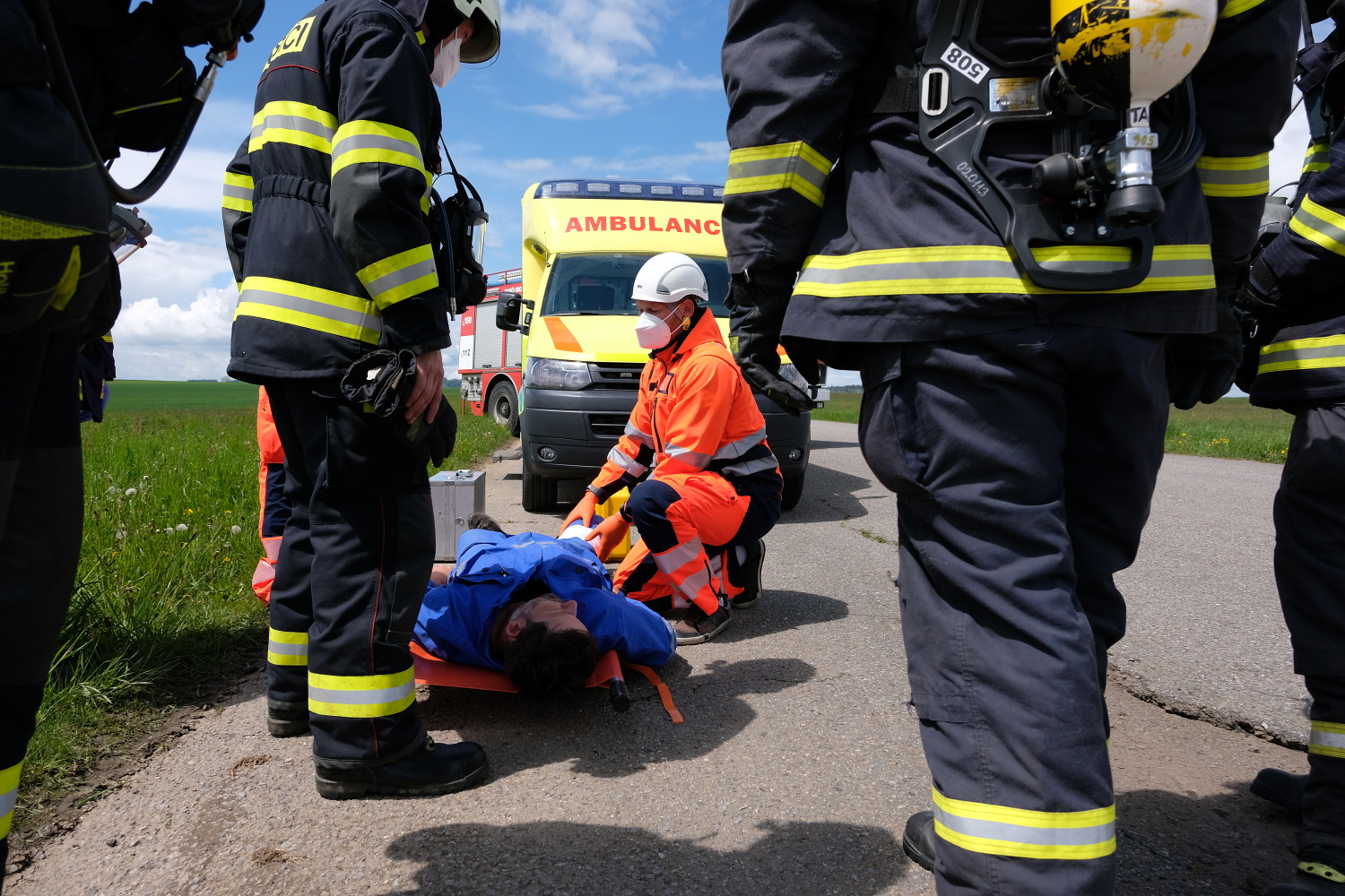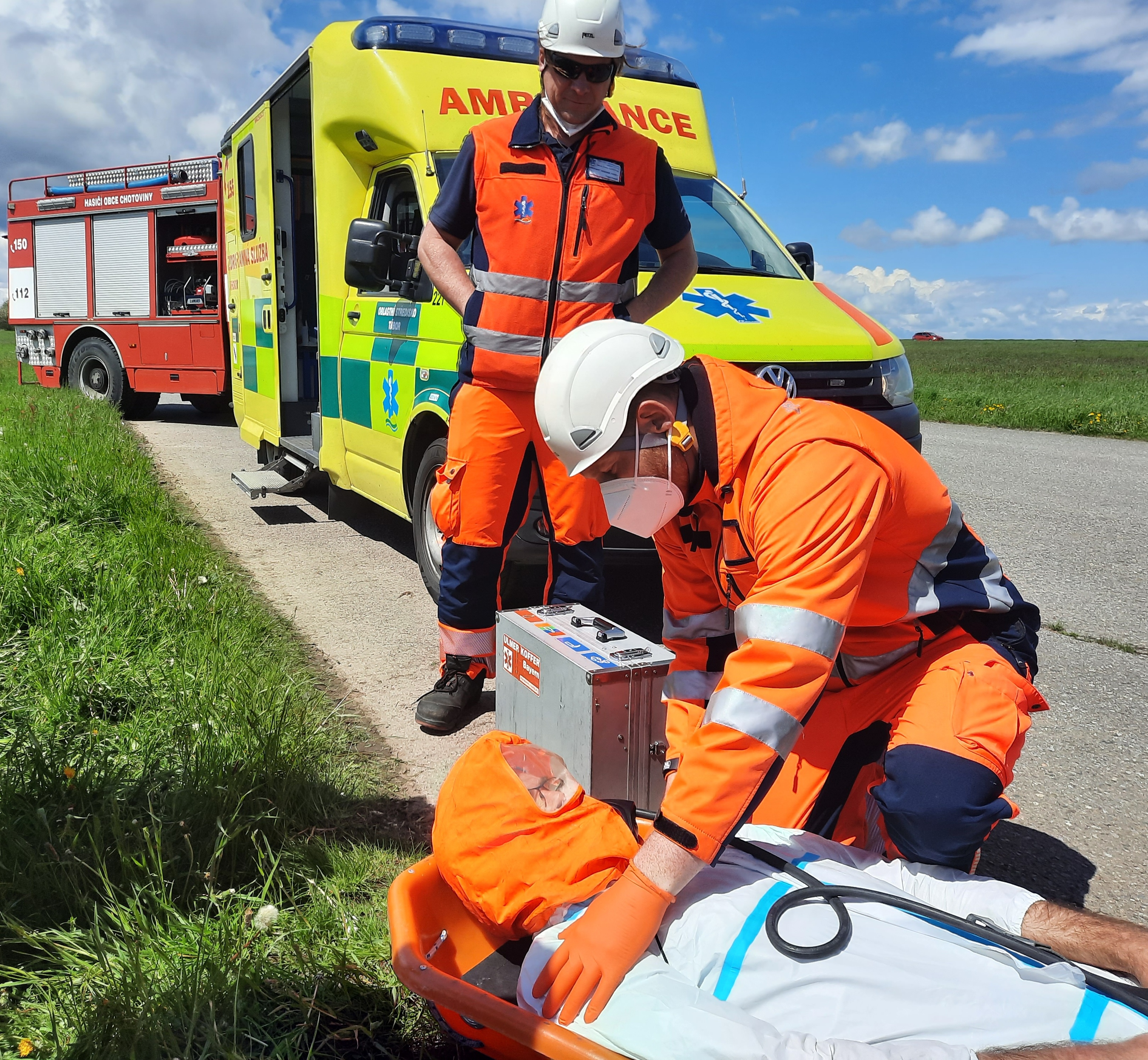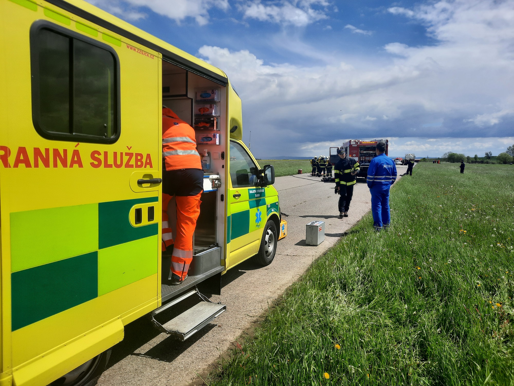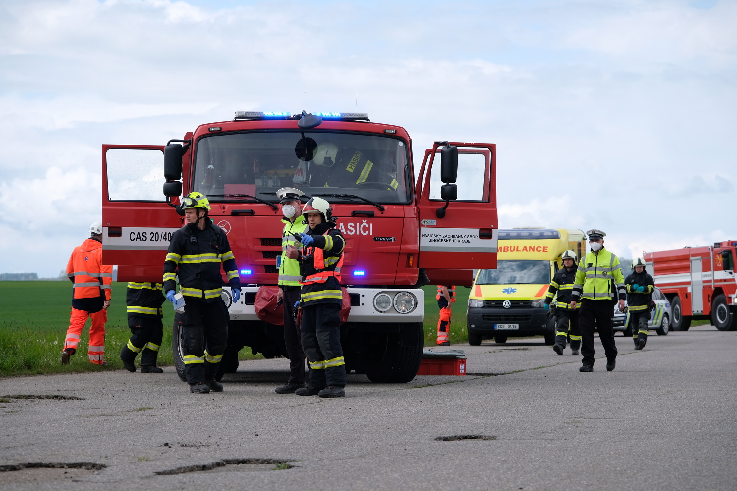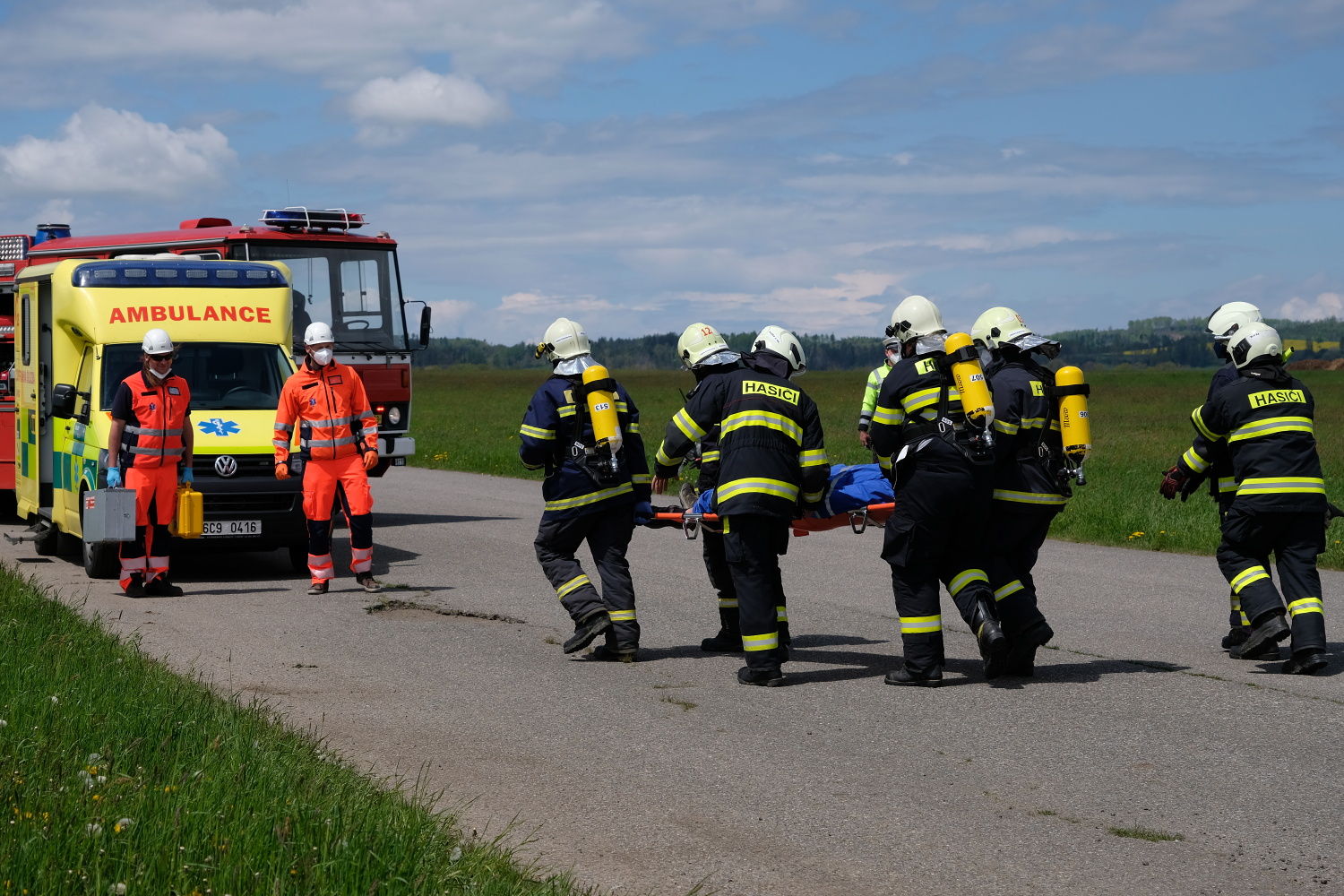 Pro potřeby cvičení byla využita letištní plocha Tábor – Všechov, představující 74. km dálnice D3. Zde byla simulována dopravní nehoda v jejíž důsledku došlo ke zranění celkem 3 osob, z nichž 2 osoby zůstaly zaklíněné v osobním vozidle. Jejich vyproštění bylo nutné provést v režii jednotek požární ochrany za pomoci hydraulického vyprošťovacího zařízení. Vzhledem k přítomnosti nebezpečné látky byla velitelem zásahu stanovena tzv. nebezpečná zóna a vnější zóna. Činnost ZZS JčK probíhala ve vnější zóně, aby nedošlo k ohrožení života a zdraví zasahujících členů výjezdové skupiny. Po vyproštění a provedené dekontaminaci osob postižených na zdraví převzali členové výjezdové skupiny ZZS JčK k ošetření nejprve řidiče cisternového vozidla a následně také oba pasažéry osobního vozidla. Všem byla poskytnuta nezbytná přednemocniční neodkladná péče a simulován transport do zdravotnického zařízení.