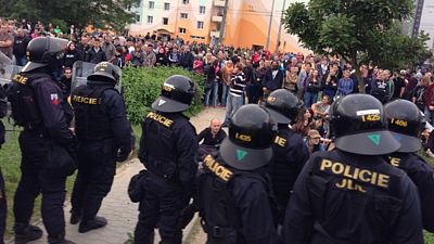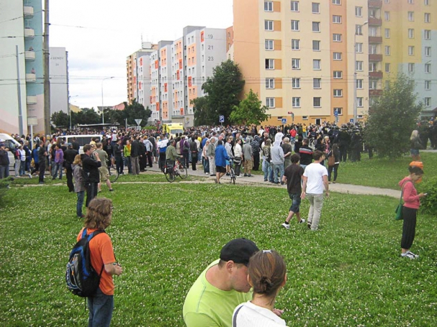 V sobotu odpoledne proběhla, na náměstí Přemysla Otakara II. v Českých Budějovicích, povolená demonstrace na protest proti problematickému soužití s romskou menšinou na sídlišti Máj. Odtud se nepovoleným průvodem na sídliště vydali stovky demonstrantů. V následujících hodinách zde došlo k tvrdým střetům mezi extrémisty z řad demonstrantů a příslušníky Pořádkové jednotky Policie ČR.
